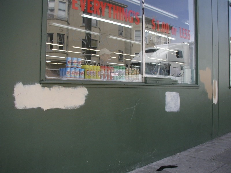 On my travels this year, I’ve been interested to see different removal ‘regimes’ in action. In San Francisco, the city has put the onus of removal upon the property owner. If graffiti appears on your property, you are under an obligation to remove it within 30 days. If you don’t, the city’s attorneys will obtain a court order against you to allow city officials to remove the graffiti themselves, and you then have to pay the costs (at least $500 US, or $775 AUD). Here’s a photograph of a man in the Mission District of San Francisco who was busy painting over a tag on his wall: