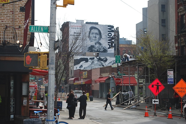 New to me also was this massive piece by WK Interact, which you can see up on the rooftop, below the billboard for Marina Abramovic’s show at MoMA: