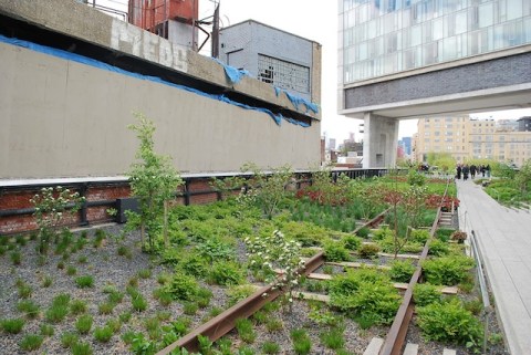 The other intervention in public space that redirects the everyday gaze is the High Line, a park that has been built around and on the tracks of a disused workers’ elevated railway, running north from Ganesvoort Street in the Meat Packing District.