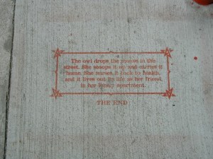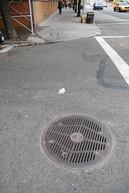During my recent visit to New York, I saw two interventions in public space, neither of which might meet any strict definition of ‘street art’, but both of which manage to confound the separation between the upward tourist gaze and the downward gaze of the everyday.