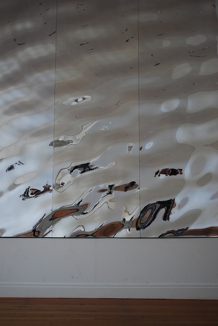 Eliasson has a fetish for light and mirrors (The Weather Project, like most magic tricks, was all done with mirrors and really big lights), and some of the subsequent rooms show him playing with these devices, in a way that allows the spectator to have a lot of fun as well. In one room there are some undulating mirrors that distort sections of bodies across an entire wall in patterns that resemble the tiles and paving stones that are routinely used in urban space: