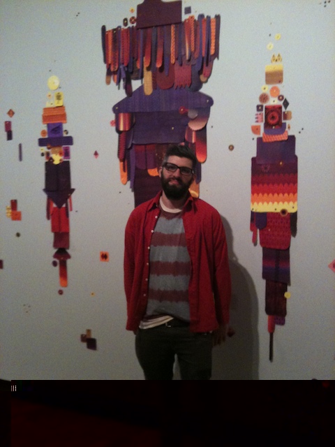 The conversation with Niels Oeltjen brought other issues to the fore as well, such as the politics of street art and its role in ‘city-building’. Neils’s work (like that of some others in the show, such as Miso, Meggs, Ghostpatrol and Lister) also points towards some of the more contemporary directions in street art, using drawing, painting, paper cut-outs, and collages to create work for the streets. Neils was invited to create a work specifically for the exhibition, a glorious confection of colour and shape: