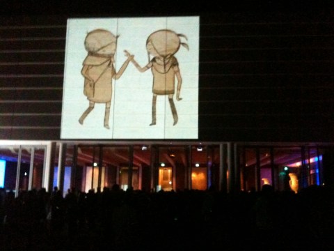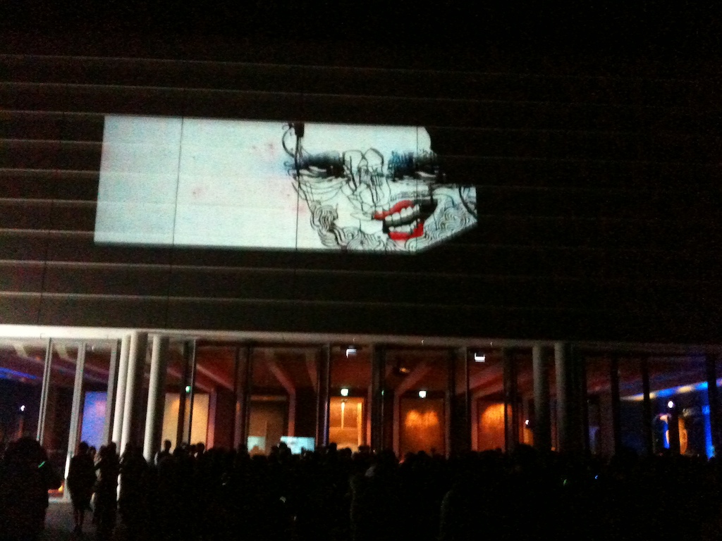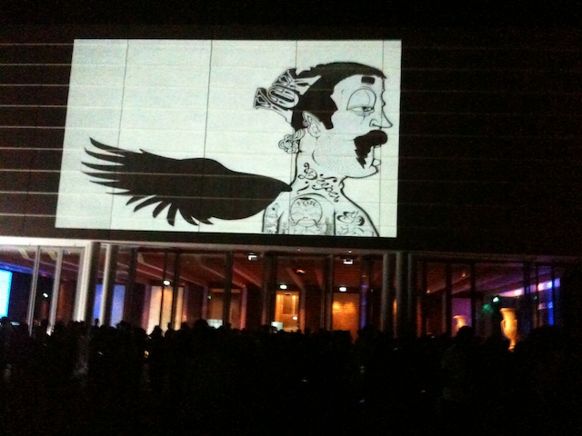 On Friday night there was a preview of the show prior to its October 30th opening, with a party in the museum’s Gandel Hall and forecourt. I’m told that hundreds of people bought tickets to come to the party (hopefully they also went to see the exhibition). Works from the show were projected on to the museum walls; here’s a selection of some of my favourites: