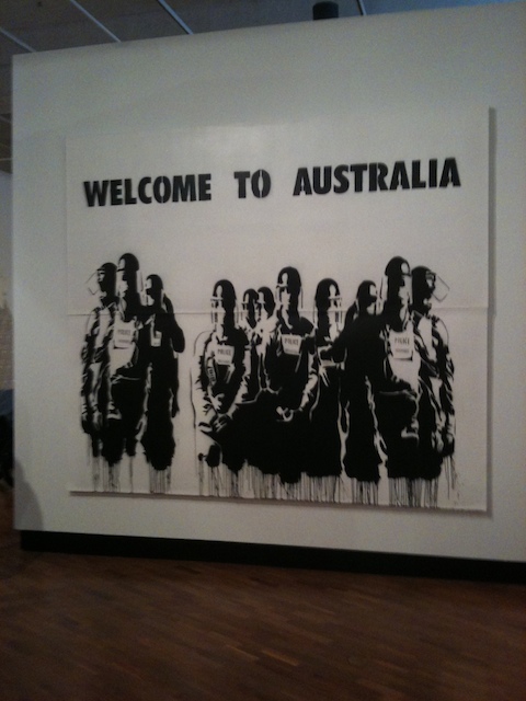 One of Vexta’s best-known works, Welcome to Australia, is featured in the exhibition: