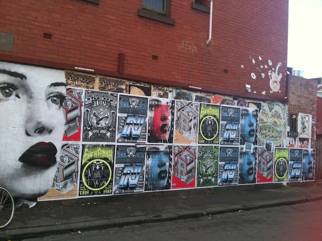 Rone has been a really important figure in the Melbourne street art scene for a long time now. His collaborative work with Meggs and as part of Everfresh has contributed enormously to the streetscapes around Fitzroy and Collingwood. So it’s great to see him having a solo show (and a hugely successful one at that, with all works sold even before opening night). You can find pictures from the opening night hereand read more about the show on the Everfresh site here.