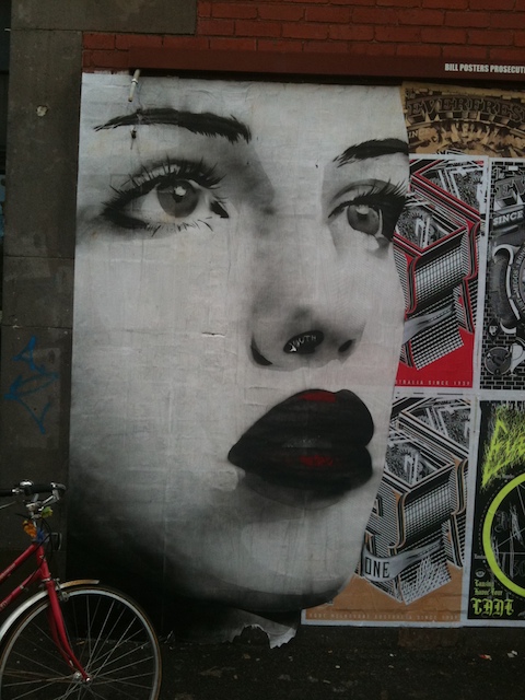 Instead of making it to opening nights, recently I’ve been lucky if I’ve made it to the last day of an exhibition…. Today I finally got to see Rone’s solo show, L’Inconnue de la Rue, at Backwoods Gallery in Collingwood, Melbourne.