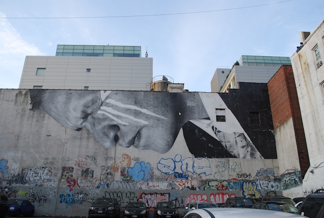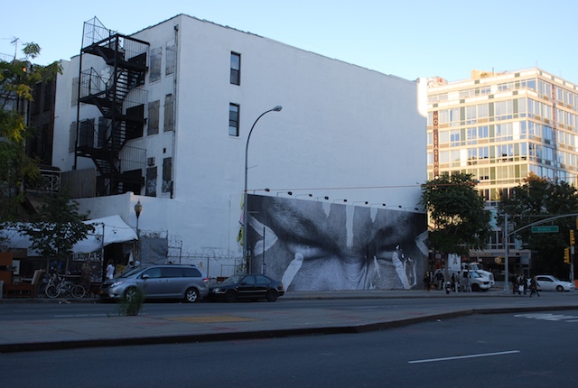 In addition to those two locations, JR’s work was also on the best-known spot in Manhattan: the wall at the corner of East Houston Street and Bowery: