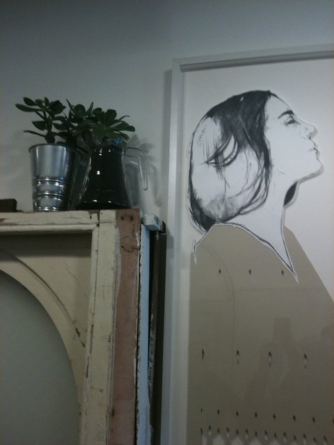Les Lumières transformed the gallery space of No Vacancy at Federation Square into a vision of an urban space inflected by pockets of calm, of a city lit by white neon light, and composed of spaces oscillating between the functional and the beautiful. Gorgeously drawn works were present, of course, but also doorways, pieces of wood, and a range of objects, implements and plants that evoke the city and some of the possible things we do in urban space (such as move through it, make gardens in it, go out drinking in it, live in it…). It was a show that seemed influenced by travel (in that Miso has in the last couple of years been to the Ukraine, Japan, London and New York) but also by a lot of reading and thinking: the result was a show that invited us as spectators to look, think, and perhaps even to read…